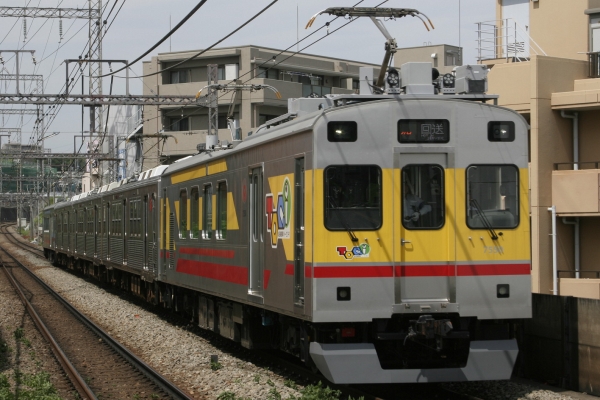 '14年5月12日の撮影:東急7910F入場回送 えぇ……。お久しぶりです。ひるぜんでございます。 大変長らくご無沙汰しておりました。 4月中はいろいろと忙しく、ブログ更新をすっかり怠ってしまいました。 このブログを心待ちにしている人もなかなかいないとは思うのですが、もしいたらごめんなさい。 あと、久しぶりにブログを開いたところ、アクセスカウンターがもう少しで2000PVに達しそうな数を表示しておりまして、とても仰天いたしました。 ほとんどは東横線の運用表を見に来てくれた人でしょうか? ありがたいですね。作ってよかったです。西武車・東武車等はしばらくお待ちください。有楽町線が絡むととたんに作業時間が増えるんですよねこれ。 忙しい忙しいとはいいつつも、ある程度の頻度でテツ活動はしておりましたので、近いうちに報告させていただければと。 予め時間のあるときに書き溜めておいて、予約投稿機能を使って毎日更新にしようかと考えております。 もしよろしければお付き合いくださいませ。 (なお、Feedly等のRSSリーダーでは、予約投稿を使用すると取得が遅れてしまうようです……。ご注意ください) それでは、まずは直近の撮影報告から。 なお今回から画像サイズを変更いたしました。 ブログ設立から半年と経たずに、容量の半分に達しそうな勢いでしたので確認してみた所、1枚あたり650KBも使用していることがわかりました。 さすがにこれは大きすぎるので、解像度を上げつつ相似比で半分にして、また従来サムネイル表示→クリックで元解像度表示としていたところ、そのまま記事上に元画像を表示するように変更します。 従量課金制通信や、低速度制限回線を利用されている方には申し訳ありませんが、トップページは今までどおり画像なしで行きますので、どうかご理解のほどよろしくお願いいたします。 今日(もう昨日ですね)は田園都市線へ。 最初は横浜線で205系でも、と思っていたのですが、たまたま開いたTwitterを見て回れ右。あざみ野駅へ。 執筆時点ではまた記事にしていませんが、2週間ほど前に同じ場所に来たばかりです。 まず来たのは8119編成。先日B修繕工事が終わったばかり。このころは曇っていましたが……。 8616編成が来る頃には晴れました。 ここは昼間のダイヤだとかなり被り率が高いです。 直接被らなくとも、撮ろうとすると後ろから上り列車が来ていて危ないので自粛、ということが多く、滞在時間の割に撮影枚数が少ないです。 他に同業者は2名ほどいらっしゃいましたが、列車に背を向けて完全に"待ち"状態。 1時間半ほど待っていると、突然同業の方が6~7名ほど登場。いわゆる”追っかけ組”さん方ですね。ご苦労様です。 さて、本命。 これです。7910編成の"デヤサンド"。 これでは赤帯なしの7910編成だということがわかりづらいため、多くの人が多摩川線内に行っていたのでしょう。比較的人数が少なく、平和に撮影できました。 先頭長津田方からデヤ7550+デハ7710-デハ7810-クハ7910+デヤ7500です。 2枚目。まだ7910編成と判りませんか。 ではこれで。ブレていますが、赤帯のない先頭部がお判り頂けるかと。 これにて撮影は終了、学校に向かいました。 さて、この7910編成ですが、これが実質的な廃車回送であるようです。 元東横線用1000系の改造によって登場した1500番代(?)の投入が開始され、先月にまず7908編成が離脱、代わりに1503編成(?)が営業を開始しています。 この度7910編成が離脱したことによって、さらにもう1本の1500番代が運転を開始することが想像できます。1度にたくさんの編成を投入すると万が一不具合があった時に困るので、次の編成の投入をもって一旦様子見をするのではないかと踏んでいるのですが、はたして。 どちらにせよ、元デハ7001という貴重な車両を失ったことに他なりません。 大手私鉄において、52年という長い時間走り続けたことは敬服に値するかと思います。 この編成の来歴を簡単に追ってみることにします。 東急7000系は1962年、アメリカのパッド社との提携により日本初のオールステンレスカーとして登場しました。この時の第1編成が(←渋谷)デハ7001-デハ7102-デハ7101-デハ7002でした。 その後、しばらく東横線での活躍を続けますが、のちに大井町線へ転属しました。 1966年の田園都市線に転属したグループ(1980年頃に東横線に再転属)のなかに7001編成がいたのかどうか、簡単に調べただけではわかりませんでしたが、いずれにせよ1985年時点では7001-7102-7103-7104-7101-7002の6連で大井町線の運用についていたようです(Wikipedia「東急7000系電車」)。 7000系は機器が老朽化していること、車体強度は新製時のままを維持していることなどから、機器を大きく変更する改造が順次行われ、7700系を名乗ります。 1987年から88年にかけて4+2の暫定編成を組み大井町線で運用されたのち、目蒲線ホームの4連対応化工事が完了した1989年に目蒲線へ転属。4両編成で運用を開始します。 この時の編成はクハ7910-デハ7810-サハ7960-デハ7710であった